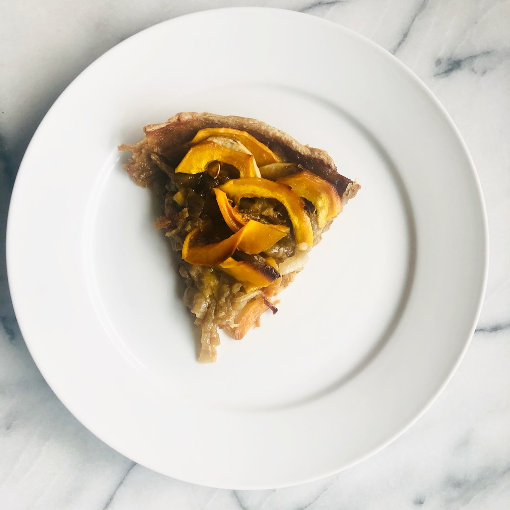 Today I had not one, but two slices of my leftover caramelized onion and squash tart. You guys! It is soooooo good! It’s a fairly labor-intensive recipe. But, if you can get into a meditative rhythm and embrace the sauteeing of onions and the endless chopping of squash and sweet potatoes, you’ll be OK.